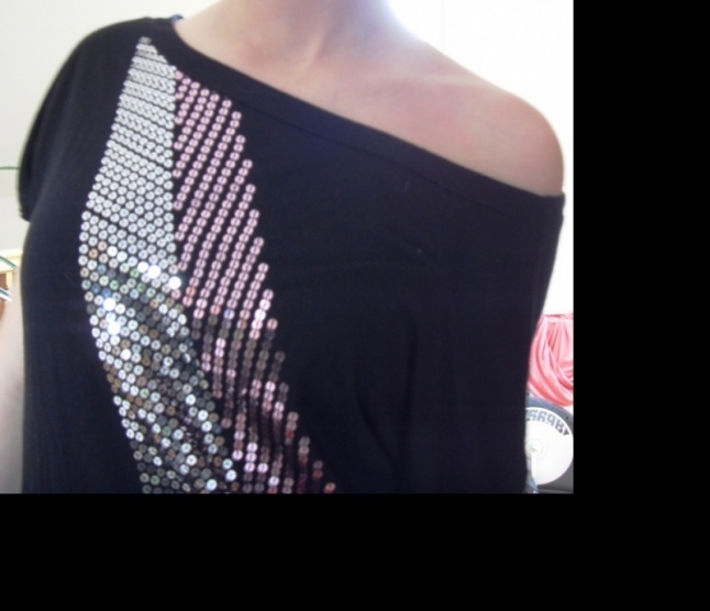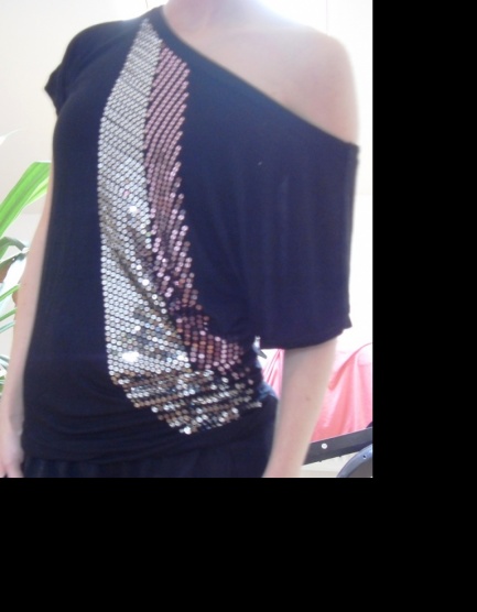 0Prodám krásný delší černý top, s flitrovým asymetrickým pruhem
