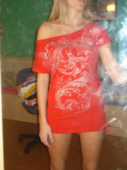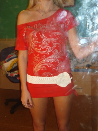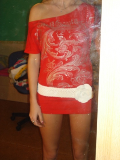 Nabízím červenou tuničku se spadlým ramenem. Nošená parkrát, ale je v perfektním stavu.