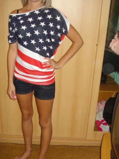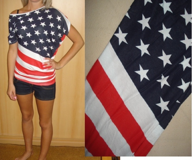 Nabízím novou, nikdy nenošenou tunika s americkou vlajkou na jedno rameno.