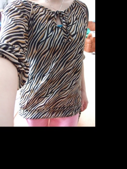 Prodám novou tuniku s tygrovaným vzorem. Slovem Novou myslím, že je nikdy nenošená, nepoškozená a asi tak před týdnem koupená. PC: 409kč v Kiku. Velikost odpovídá na Sko i Mko