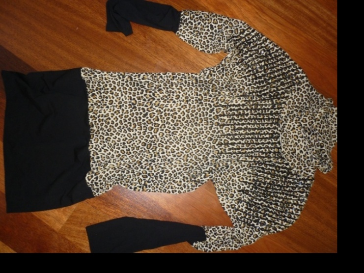 Jen odzkoušené, na dekoltu jsou vyšité černé flitry, má mírný ,,rolák" na krk. Prodám za 250,- bez poštovného.