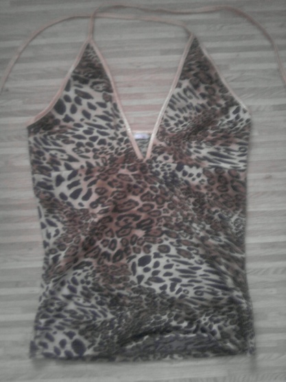0Nabízím tento top,málo nošený v dobrém stavu. Zlaté lemování. Hodí se na párty či jen tak na nošení v létě.