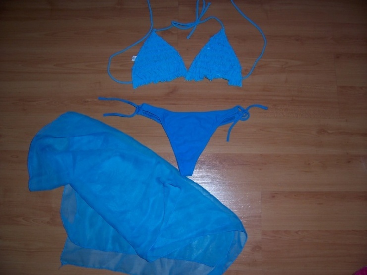 Prodám krásné tyrkysově modré plavky. Vršek je volánkový a opticky tak zvětšuje poprsí, sedne na košíček A,B i C. Kalhotky jsou tanga, velikost XS-S. Šnůrkama se dá regulovat velikost. Minimálně nošené, nezničené, jako nové, jako dárek přidám šátek, který jsem nosila uvázaný přes tanga.