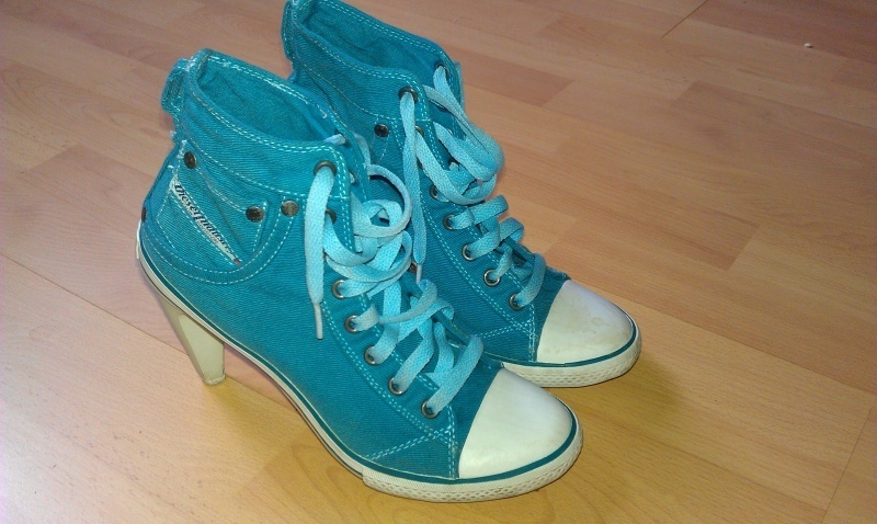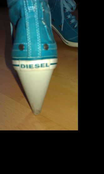 Co k nim dodat? Jsou prostě originální, sexy, nápadité a překvapivě i pohodlné. Podpatky 10 cm, velikost 39, zakoupeny v Dieselu v Pařížské v jarní kolekci, jednou vzaty, myslím, že mám i doklad. Jak je vidět na podrážce, jen jednou vzaty. Hold jsem v nich příliš vysoká, ale jsou prostě bombastické. Cena 2000 Kč s poštou. Prosím SZ