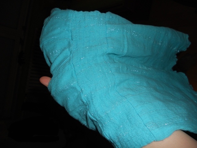 Tyrkysové tílko se zavazováním za krk, minimálně nošené, žádné známky obnošení, jako nové. Prošité stříbrnou nití.