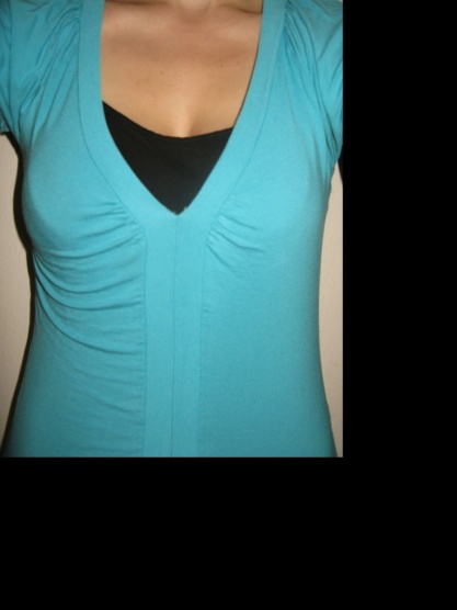Nabízím tyrkysové tričko z HM za 40 Kč, má na přední straně šev, možno využít jako těhotenské, nosila jsem ho ale i normálně. Materiál příjemně pruží (velikost uvedená S, ale mohlo by být i M, díky švu a materiálu), má velký výstřih do V. Je již nošené.