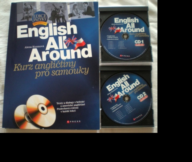 Učebnice angličtiny ve formátu A4 (měkká vazba) od Aleny Kuzmové : English All Around s 2 poslechovými CD. Učebnice je zcela v pořádku, avšak do stránky 114 jsou některé pasáže zvýrazněny zvýrazňovačem a některá cvičení jsou vyplněna tužkou (celkový počet stran 346). Učebnice běžně stojí 400 - 450 Kč a většinou je vyprodaná, dotisk se nechystá.