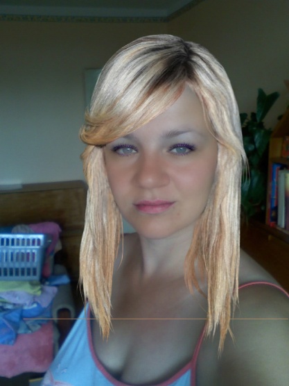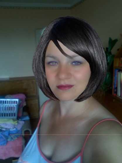 Chtěla jsem zkusit černou, jak by mi slušela, protože mám odjakživa světlý vlasy. Docela se mi na mě líbí, ale možná je to tím, že ta původní fotka je dost tmavá. Jinak jsem spíš "vyblitá"...Neměla jsem zrovna po ruce lepší fotku, kde bych měla vlasy z obličeje.