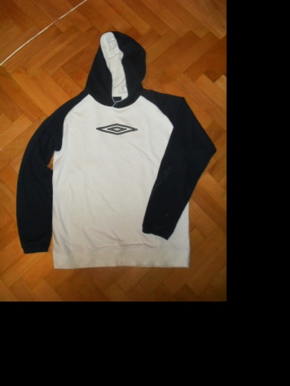 Málo nošená mikina zn.Umbro.S kapucí-na přední straně cvočekVelikost LRozměry:CD-72cm Pas-54cm Rukáv od podpaždí-57cmCena:600,-