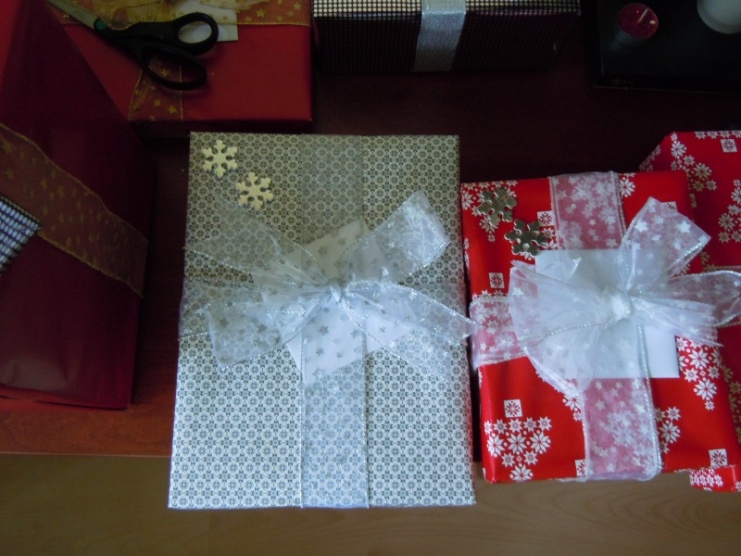 Přikládám moje dárečky. Letos jsem si chtěla vyhrát s mašlemi, ale nakonec mě můj první neúspěch odradil, takže jsem to ponechala klasice
