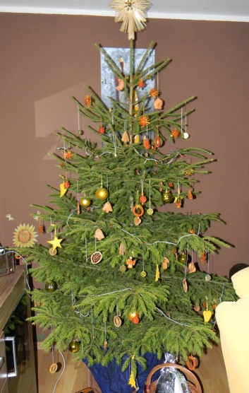 tak já měla vloni svůj první živý stromeček a původně jsem ho chtěla čistě přírodní, jen se slaměnýma ozdůbkama a perníčkama, ale nakonec by byl takový chudý, tak jsem i pár baněk přidala. Letos u té zlato-měděné asi zůstanu, jen přikoupím nějaké baňky...