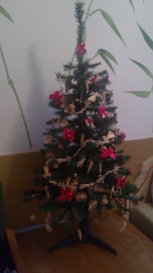 Tak jsme koupili stromek i ozdoby. Budu mít slaměné s červeným, červené mašličky a slaměný řetěz