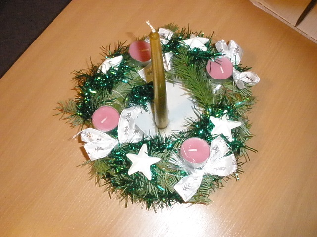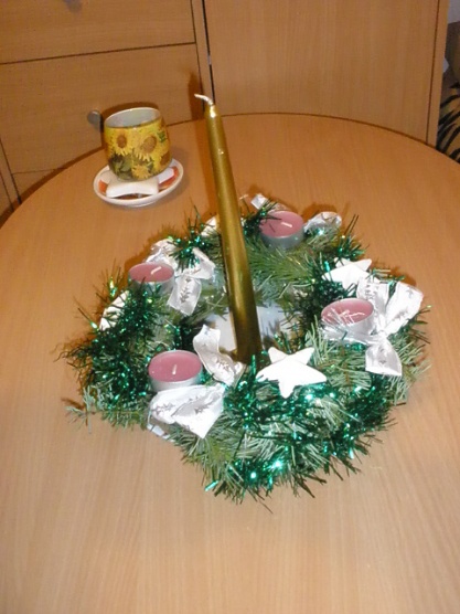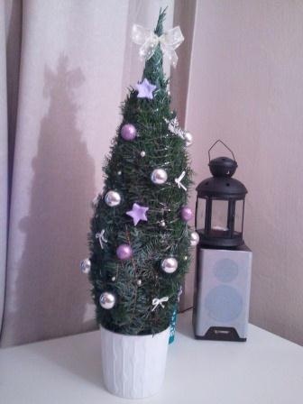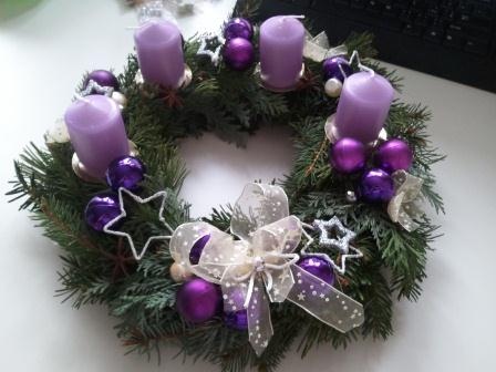 Ale do mého studentského brlohu, který mám bílo-krémový s fialkovými, režnými a černými doplňky, tak jsem nakonec vytvořila adventní věnec a malý stromeček do květináče (je pěkně křivej, aby bylo vidět, že jsem ho vyráběla sama )