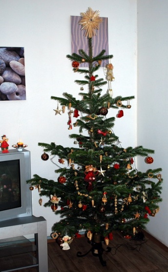 akorát ještě řešíme, jestli budeme mít jedli kanadskou, nebo borovičku... a ještě řešíme jeden problém, kam ten stromek vlastně dáme - máme skoro roční holčičku, už běhá, chvilku neposedí, všechno kramaří, takže ji uhlídat... interiér též neřešíme, obývák mám vymalovanej na odstín lila, dekor nábytku olše..