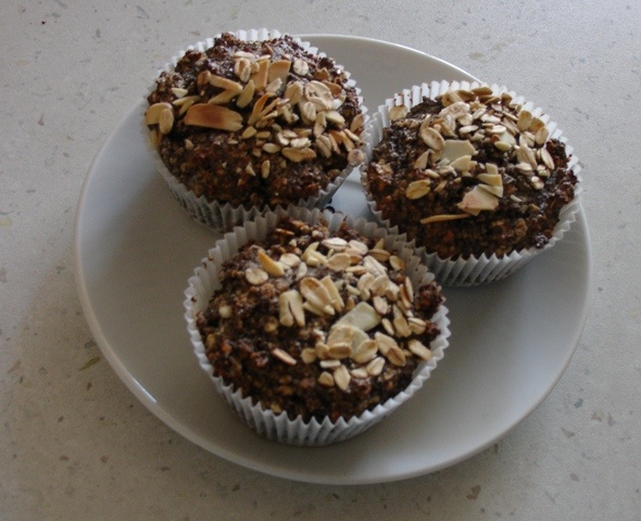 2. makové mufiny ze špaldové mouky, bez přidaného tuku. Posypané mandlemi a ovesnými vločkami.
