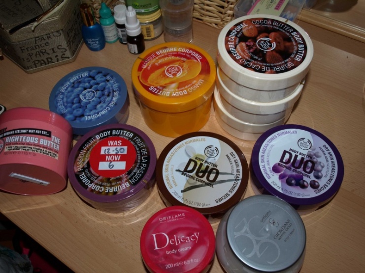 holky, dávám svou trochu do mlýna, až na másla z Body shopu jsem nefotila zásoby, ale to, co aktuálně používám