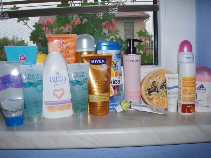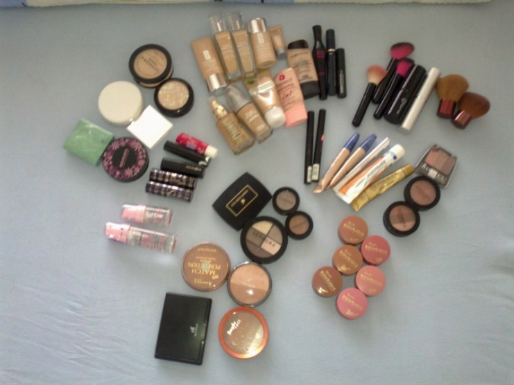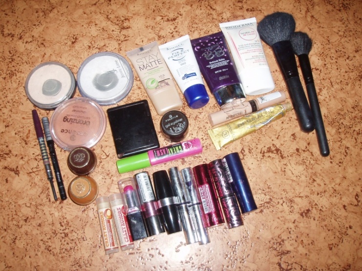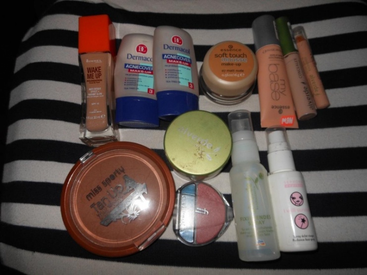 ! Taky se přidávám. + mám tělovou kosmetiku v koupelně. V kabelce sypký pudr Dermacol, ten tmavší a většinou mívám více tvářenek, 2 jsem teď vyhodila. A 2 nebo 3 balzámy na rty.