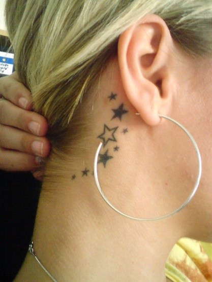 Tak já mám tetování dvě....před asi 7 lety jsem si nechala na břicho směrem k tříslům takový ornament - dnes už bych si to neudělala....protože v plavkách je to dost vidět a dnes to není už nic tak originálního, jelikož to má skoro každej, ale co naplat, dolů to dát nejde...No a druhý mám od loňska a to mám za uchem několik hvězdiček různých tvarů a s tím jsem naprosto spokojená a vůbec nelituji...naopak...moc se mi to líbí...