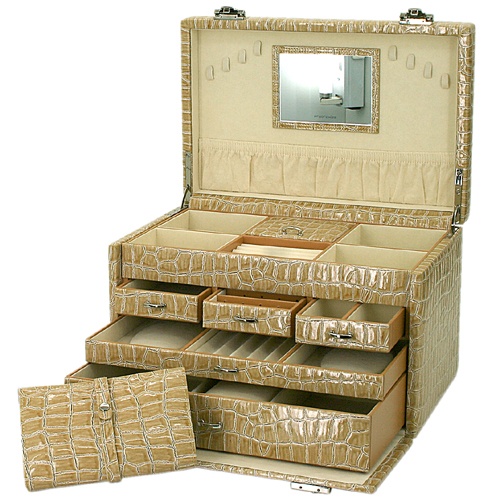 Nemohu teď vyfotit přímo tu mojí, ale mám tuhle (viz obrázek). I když je dost velká, je spíš na menší šperky. Na větší náušnice a korále na krk se chystám pořídit tohle.