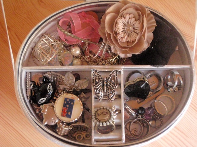 tak se musím pochlubit svým pátečním úlovkem, je úžasná, škoda, že je malá, takže v ní mám jen stříbro a pár bižu naušnic, na náramky a náhrdelníky bižu musím sehnat něco většího.
