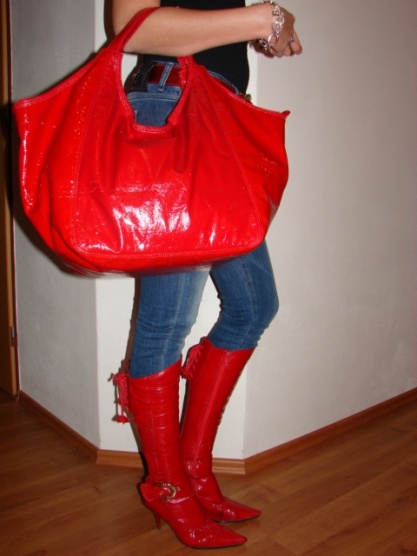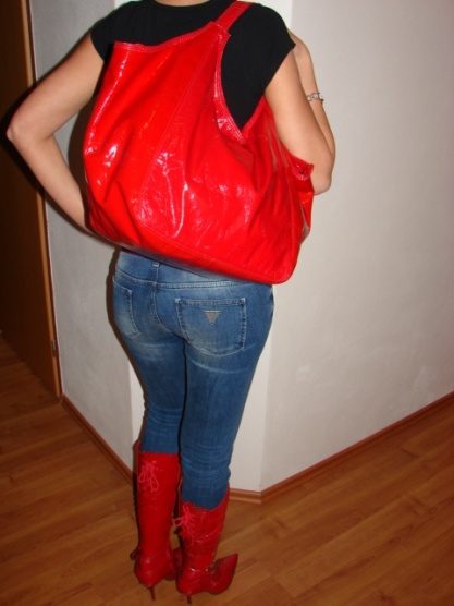 vhodná na cesty i do města. Rozměry: šířka nahoře 59cm, šířka dole 30cm, výška 37cm, hloubka 21cm. Rozměry se přizpůsobí podle naplnění kabelky. Červené kozačky na fotce jsou také na prodej, vel. 38. Cena 499Kč. Poštovné 43Kč.
