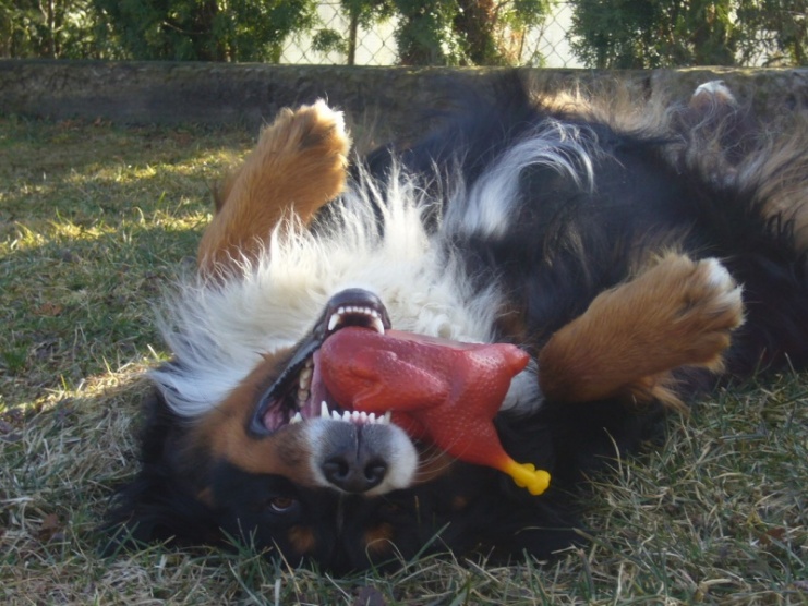 Někde jsem četla, že švýcar neudělá něco jen proto, že my si to přejeme, ale že k tomu musí mít důvod. Tak to je naprostá pravda! Pokud je při výcviku legrace a po ruce nějaký pamlsek a pochvala, nemáme s poslušností celkem problém. Ovšem, když chceme našeho miláčka za něco pokárat nebo když dostane výchovnou ťafku, tváří se, že pro ni vůbec neexistujeme a klidně se dívá na úplne opačnou stranu.