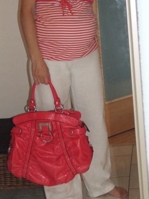 Krásná červená lesklá kabelka zn. Guess. Má jedno ucho do ruky a druhé delší přes rameno, nebo se dá nosit jako crossbody, je větší, vejde se do ní opravdu hodně. Jako nová, bez známek použití, moc pěkná, samozřejmě originál, PC 5450,- Kč.