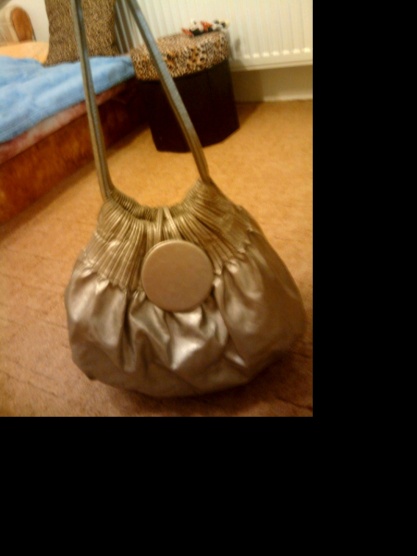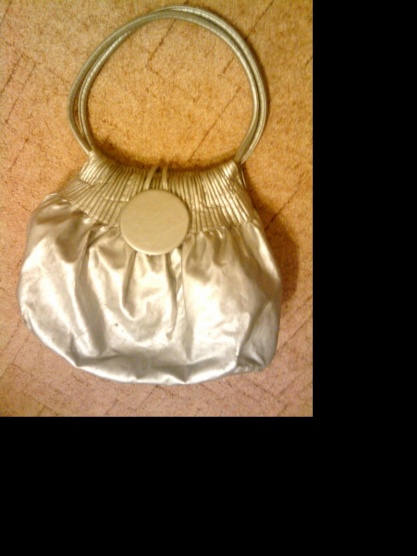0Větší kabelka se sponou velice prostorná lesklé stříbrné barvy ..nošená ale v dobrém stavu