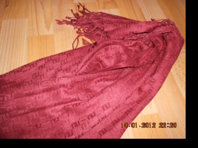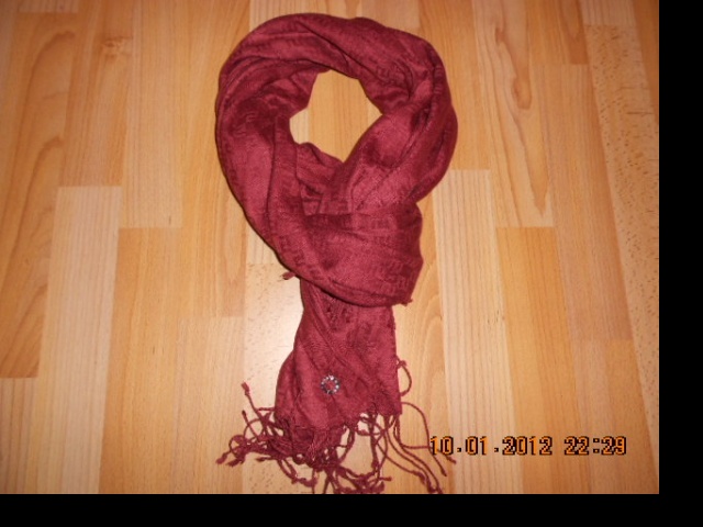 Nádherný vínově červený shawl Sisley, získaný zde, ale bohužel jsem zjistila, že tuto barvičku neumím s ničím kombinovat.