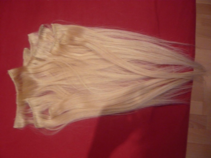 Prodám vlásky clip-in barvy blond se světlými "neviditelnými" sponkami. Se třemi sponkami jsou ks- 1, se dvěma sponkami 5 ks, s jednou sponou 2 ks. Barva je označována často jako 613. Cena byla 1990kč, nyní prodám za 900kč včetně pošty,vlasy jsou pravé paní tvrdí,že evropské já si myslím,že indické. Použity byly jednou na party a dvakrát na focení.
