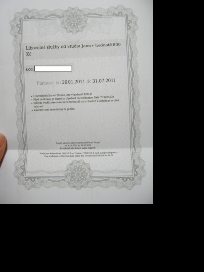 Nabízím voucher na libovolné služby od studia Jane (www.studiojane.cz) v hodnotě 800,- Má platnost do 31.7.2011. Chtěla jsem ho kvůli kosmetice, ale kvůli kožním problémům ho nebudu moct využít