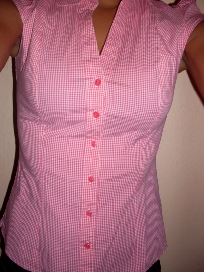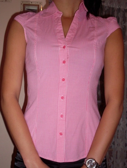 Prodám minimálně nošenou růžovou kostičkovanou vypasovanou halenku kupovanou ve F & F.