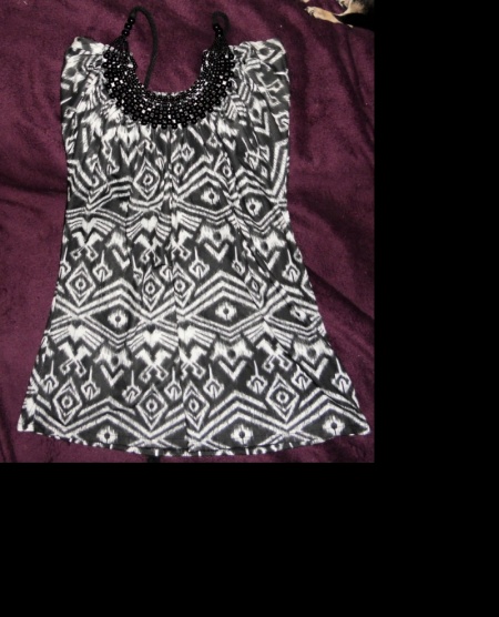 Nabízím zajímavě vzorově řešenou tuniku se zavazováním za krk. Jednou oblečená na párty. Materiál je ,,plavkovina,, stav jako nový. Super k legínám nebo úzkým džínům.