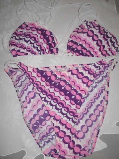Klasické bikiny s retro vzorem, použité 2 krát, jsou mi bohužel malé přes prsa. Kalhotky vel. S, trojúhelníčky na velikost A až B. Zajímavé dvojité vázání, i na kalhotkách. Jako nové. PC 600,- Kč, nyní 240,- včetně pošty, na účet předem.