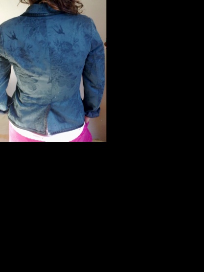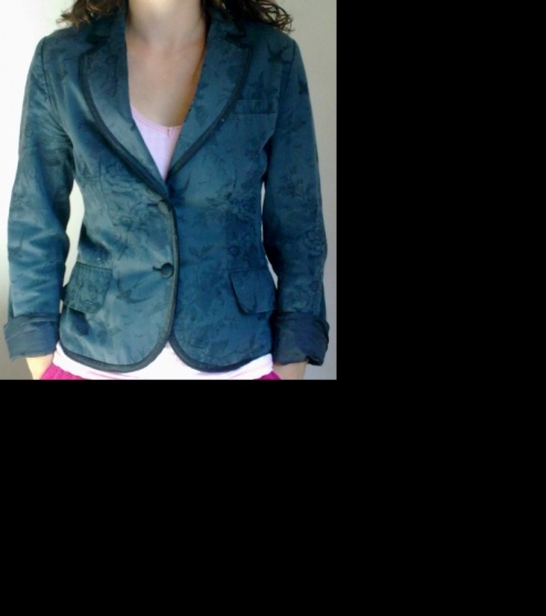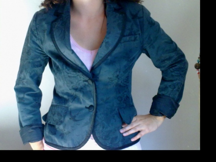0Málo nošené černé sáčko se zajímavým vzorem, saténové knoflíky, dvě postranní kapsy. Velmi elegantní, moc hezký a příjemný materiál - dobře propracovaný. Pište soukromé zprávy