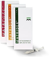 Matridex je injekční výplň na bázi hyaluronové kyseliny, která se aplikuje do svrchních vrstev kůže za účelem vyhlazení a vypnutí stárnoucí pokožky.