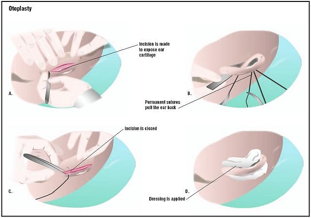 Zákrok se provádí v lokální nebo celkové anestezii. Pomocí řezu vedeného v záhybu ušního boltce je odstraněn přebytek kůže a vytnuta část chrupavky ze zadní strany ucha. V případě potřeby je možné provést i modelaci chrupavky. Uši jsou obvázány elastickou bandáží, dočasně se objevují otoky a bolest uší. Doporučuje se klidový režim.