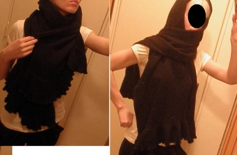 Xxxl velká šála Zara/pléd teplý černý s volánky i jako pokrývka hlavy