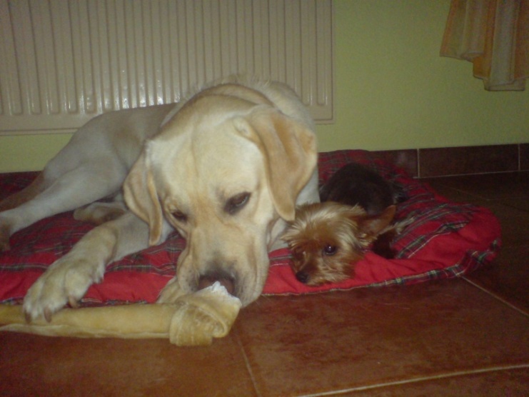 Můj je strašně zlobivý bohužel...umí sice lehni,sedni,ale venku neumí chodit bez vodítka,jak jste to svého naučily? Budeme si kupovat ještě jednoho a tak by mě to zajímalo.. .jinak jaké pochoutky kupujete? Můj miluje Vitakraft měkké tyčinky a kachní sušené plátky. Te´d mu táta zrovna dal kost normální z kotlety grrr ,fakt mě někdy se..!