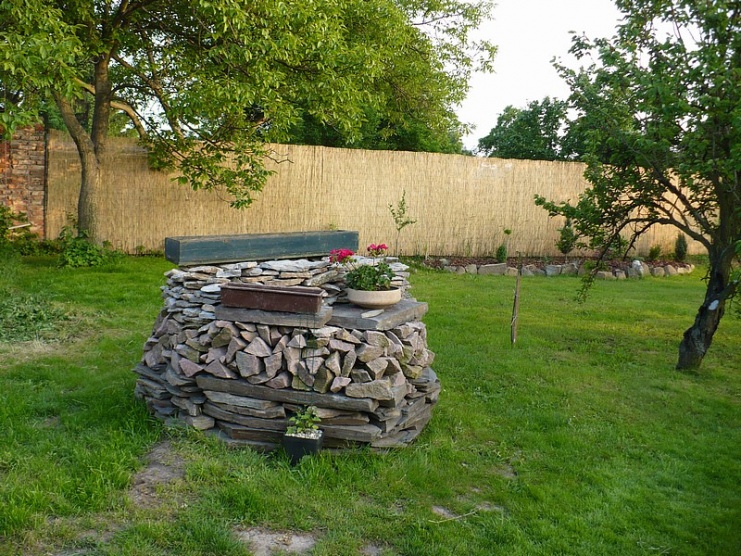 no studnu dělal manžel, pro radost. A zlobí s jezírkem, takže časem spadne stará meruňka a vyrobí se děsná díra a já budu mít další skalku díky tomu