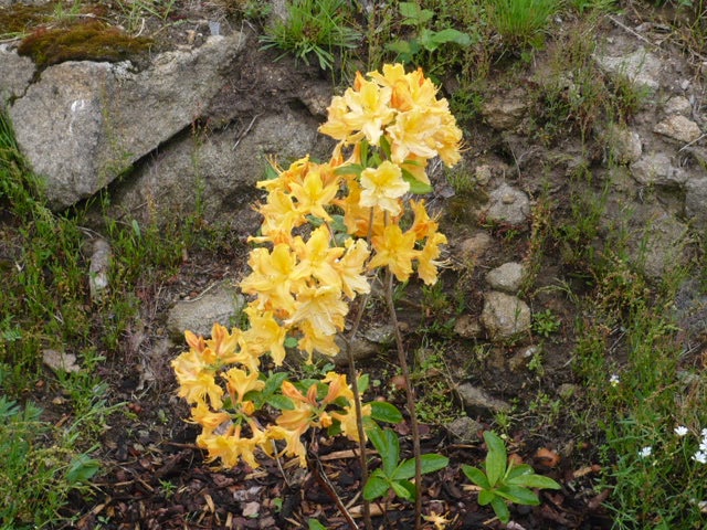 mám ještě jednu takto vysokou, červenou, ale je nějaká zpožděná - nechce kvést, to ta - jak píšeš - žlutá, je rychlejší a kvete jako o život. A azalku mám ještě jap. nízkou, ale musela jsem jí ze skalky vyjmout a dát do velkého květináče...Nějaký škůdce mi ji napadl a okousal nejen lístečky, ale pustil se dokonce i do kůry...no hrůza...tak se jí pokouším tímto způsobem zachránit, ale nevím zda se mi to podaří...a má barvu úplně stejnou jako ten tvůj rododendron...