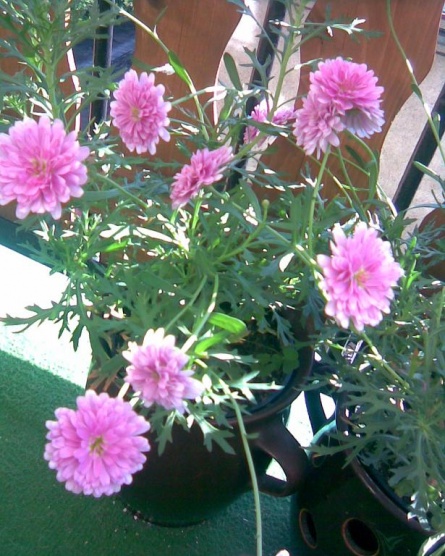Ta růžová kopretinka-to je ta jak jsem tiBříškoříkala,jestli ji mám šoupnout do záhonu-tak už je tam