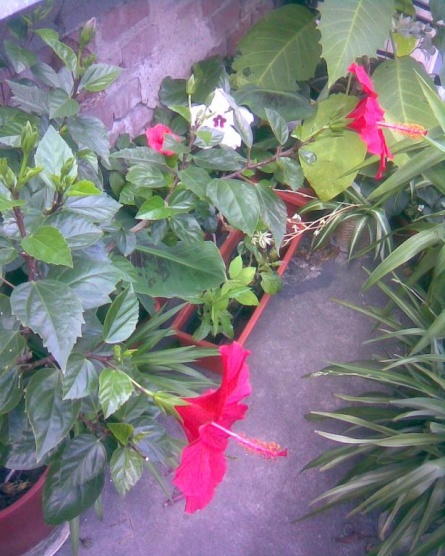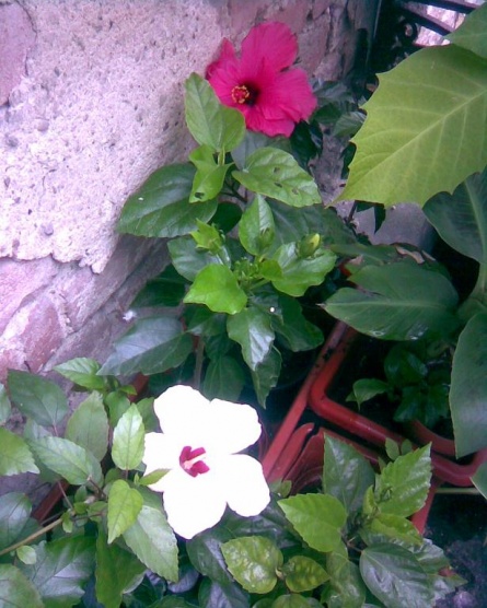 a ještě moje ibišky na balkoně a džungle nočenky-ta má rozvité květy,jen když na ni nesvítí sluníčko-jinak je zatáhne,jako na fotce