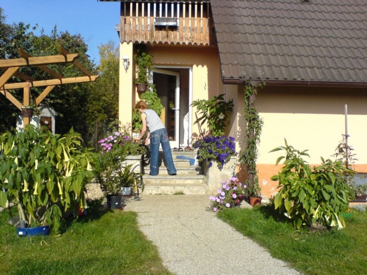 už aby to bylo--ještě dokuď jsou děti relativně malé-aby si mohli užít bazén a to vše okolo-takhle ve městě,když je jen malinko ošklivě,tak jsme zalezlí doma,ale v domě by třeba malej lítal venku furta měl by tam víc jahůdek-on je strašně jahodovej-na balkoně mám 2truhlíky stáleplodících a dole na záhoně 3trsy měsíčních-ty rostou až do vánoc