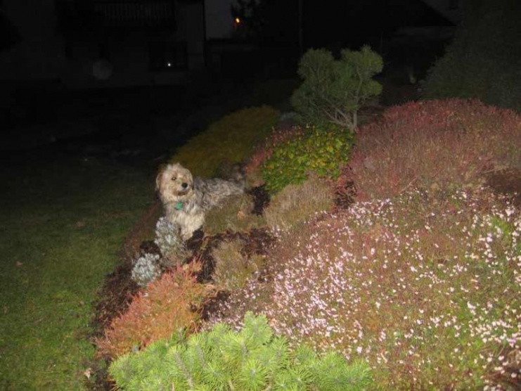 Slíbila jsem, že dneska nafotím zahradu, ale byla jsem celý den v kalupu, když jsem začala fotit, už se stmívalo, takže fotky moc nevyšly. Takže aspoň jednu - už kvetou vřesovce. Zítra nafotím více. Zahrada se pomaličku, ale jistě začíná budit. Už raší modřence, a cibuloviny. Ale zatím z toho nic nekvete.