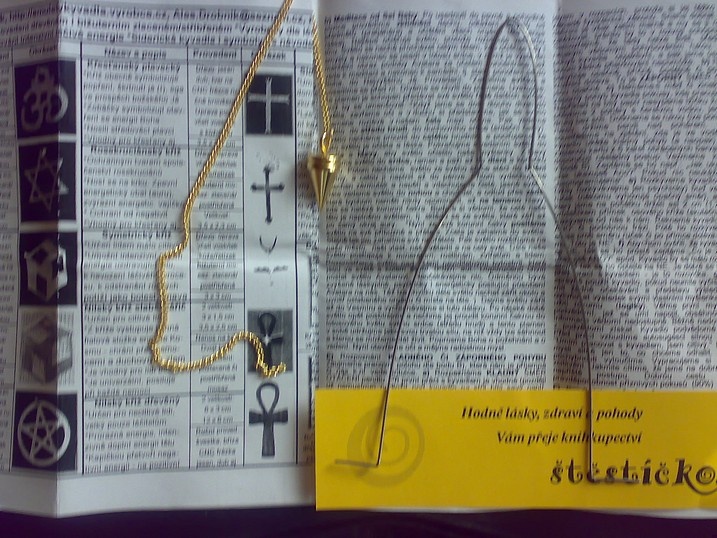 Čarodějka hlásí,že to na řetízku je kyvadlo a ten drátek je virgule