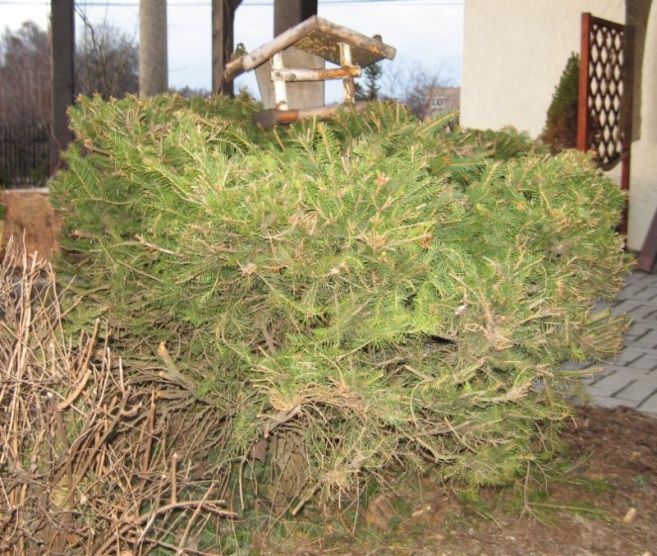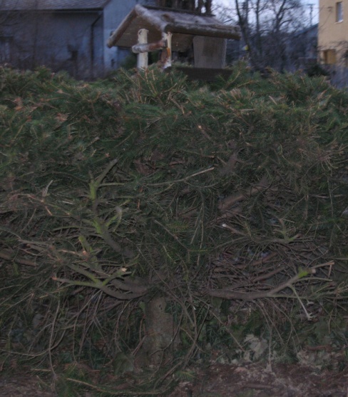 I když teď to není hezké - smrk je ořezaný na podzim. Na jaře pustí krásné světle zelené výhonky - to je pak hezčí pohled,