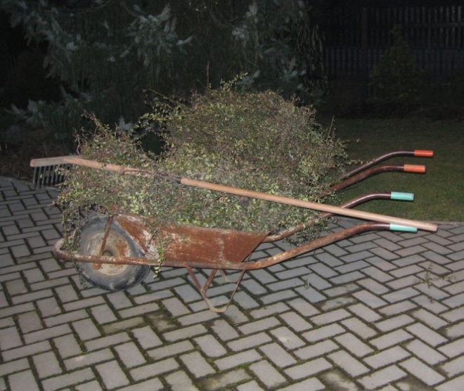 Tu je část mého "úlovku" , který shoří v ohníčku. (jsou to malé větvičky, které se nedají "skartovat" - tedy myšleno použít do štěpkovače....
