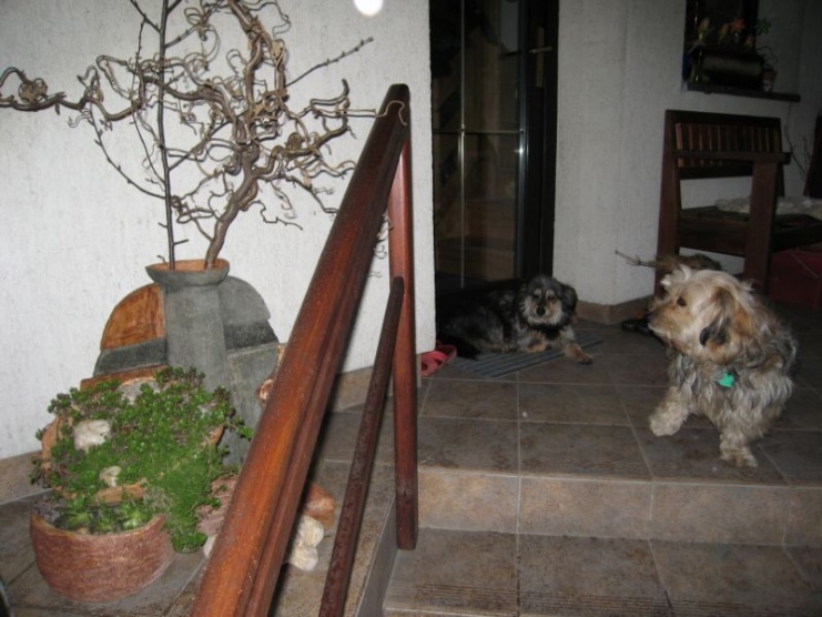 I to zábradlí a lavku na sednutí no vše moc pěkné.Velikonoční výzdoba je moc pěkná,taky by jsem si jí udělala,ale tady v bytě mě to nebaví.Když jsme měli chalupu tak tam jsem si výzdobu taky dělala.Pejsci jsou teda lumpíci tak ti to vyhrabat.Asi cítí myšky.Naši psi na chalupě taky tak hrabali,ale na chatě už náš pes nehrabe,ale asi taky je to už stářím že ho to nebaví.Koukám,že tam máš u toho vyhrabaného pínii nebo jak se to jmenuje, já mám na chatě 2 a nejsu si jistá jestli jsou to pínie.Rostou tak nějak do šířky a když jsem jednu přesazovala tak kořeny byly jen tak do široka a povrchově,že jsem to vytáhla bez problémů.