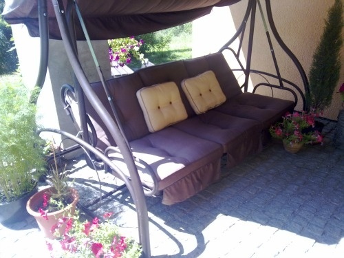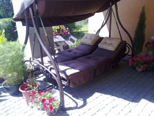 Prodám tuto super houpačku, v čokoládové barvě a s vanilkově žlutými polštářky. Může se nastavit i jako postel, viz obrázky. Velmi stabilní a robustní, kvalitně provedená. Super věc na zahradu.Místy už je bohužel dost vyšísovaná od slunka. Nastavování houpačky je jednoduché